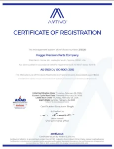 In addition, Hogge Precision offers continuous customer care by providing complete traceability of products, inspection reports, material certifications, PPAP packages, First Article Inspections, and much more.